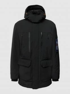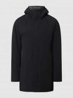 Die Jacke von BALDESSARINI ist aus strapazierfähigem Material gefertigt und gerade geschnitten. Sie zeigt sich mit Strickbesatz und Kapuze mit Tunnelzug.